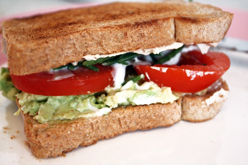 • fijngesneden rauwkost, alfalfa of andere kiemen mengen met wat goede mayonaise of goede olie